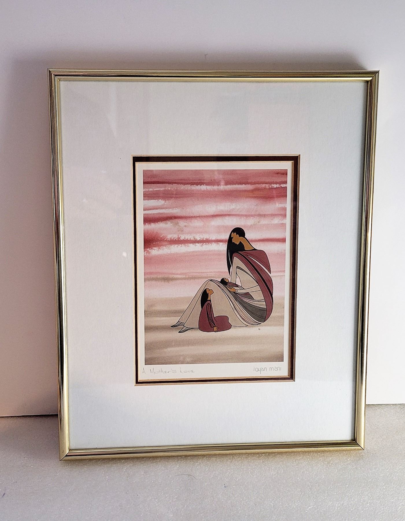 "A MOTHER'S LOVE" PRINT SIGNED BY THE ARTIST IOYAN MANI, A MANITOBA SIOUX ARTIST, 11 X 13. HOME DCOR