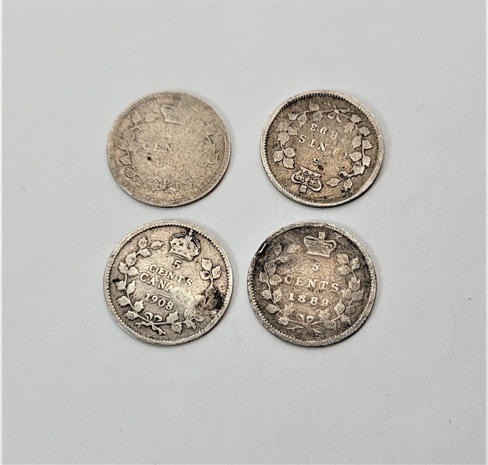 34) LOT OF 4 CANADIAN NICKLES, 1889, 1893, 1896 &