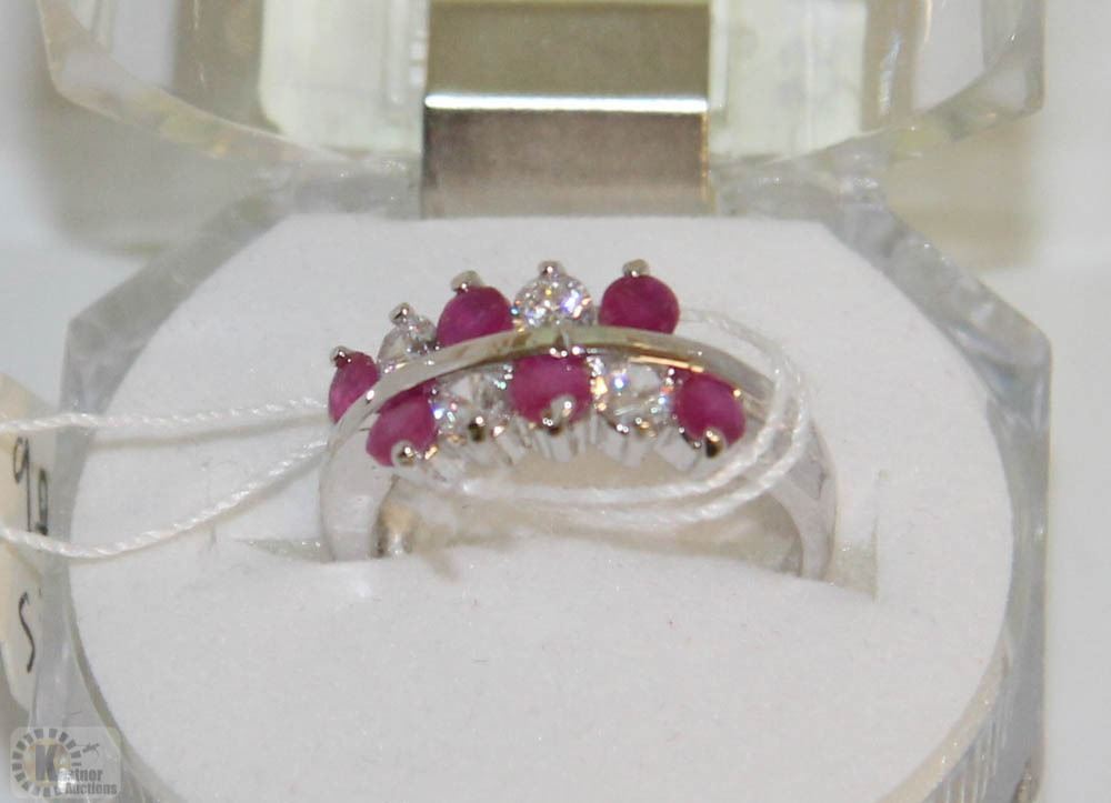 #34-NATURAL RED RUBY&CZ 925 SOLID SILVER RING
