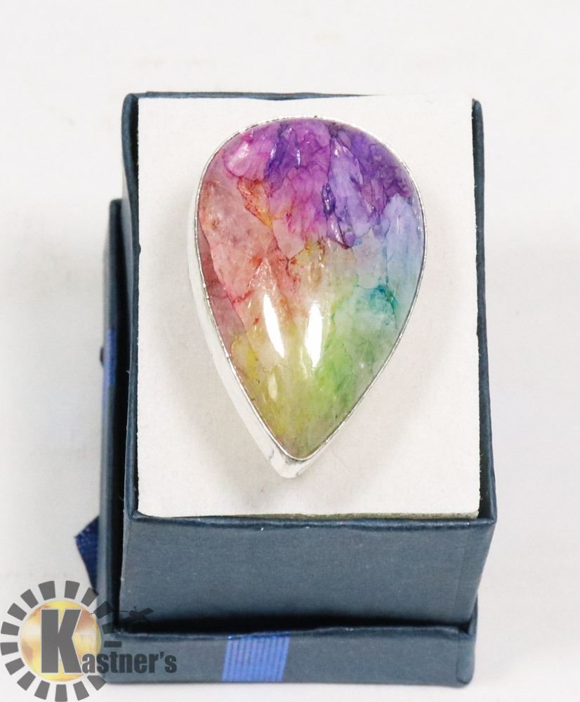 #34-RAINBOW SOLAR QUARTZ GEMSTONE RING/SIZE 7
