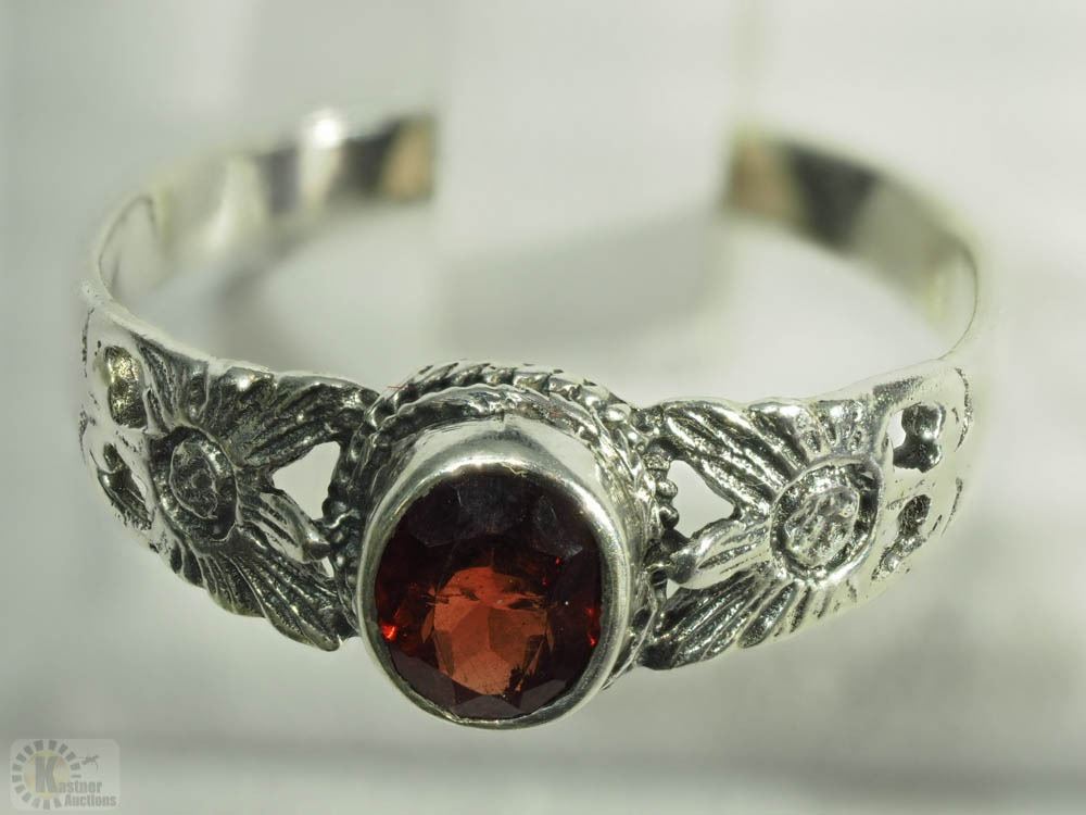 #34-STERLING SILVER GARNET RING SIZE 10.5