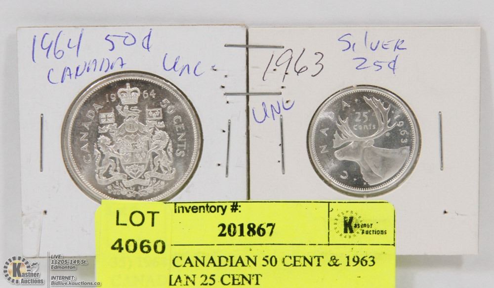 35) 1964 CANADIAN 50 CENT & 1963 CANADIAN 25 CENT