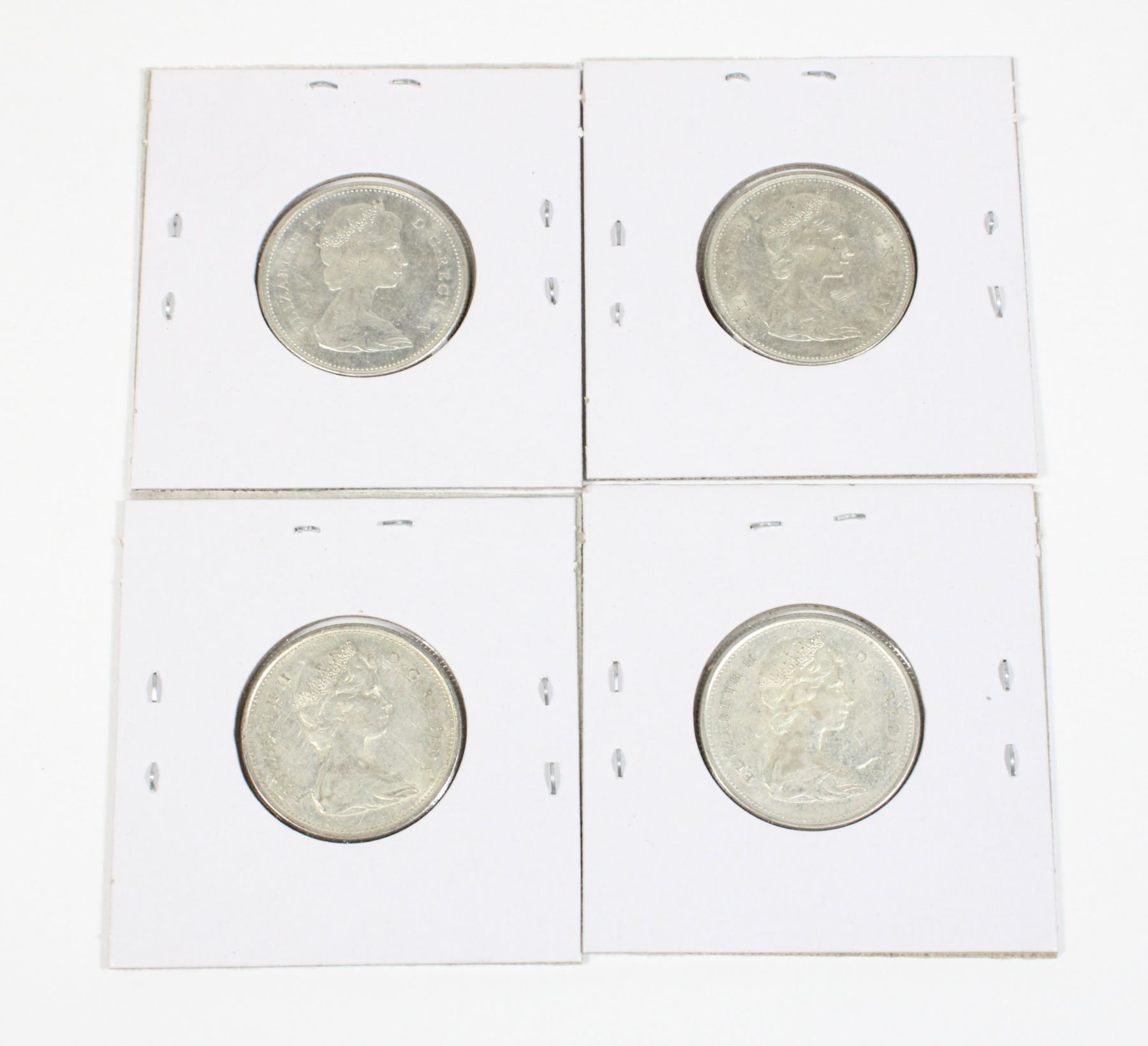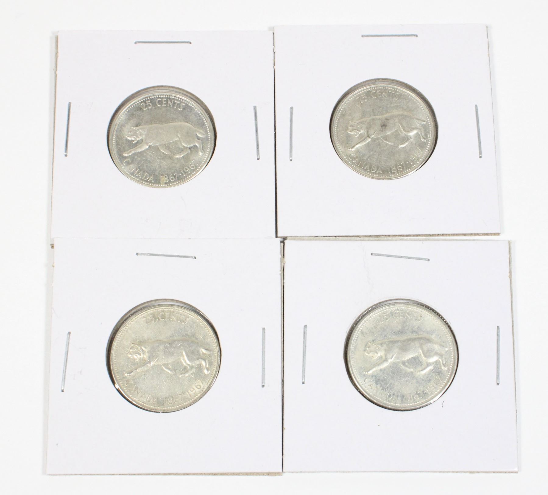QUEEN ELIZABETH II QEII CANADA CANADIAN SILVER CURRENCY LOT OF 4 1967 CENTENNIAL BOBCAT DESIGN