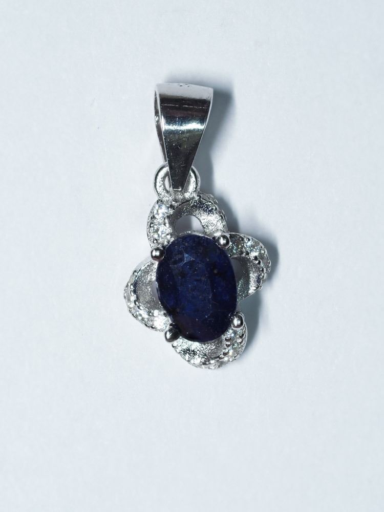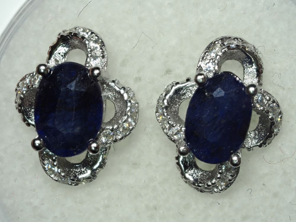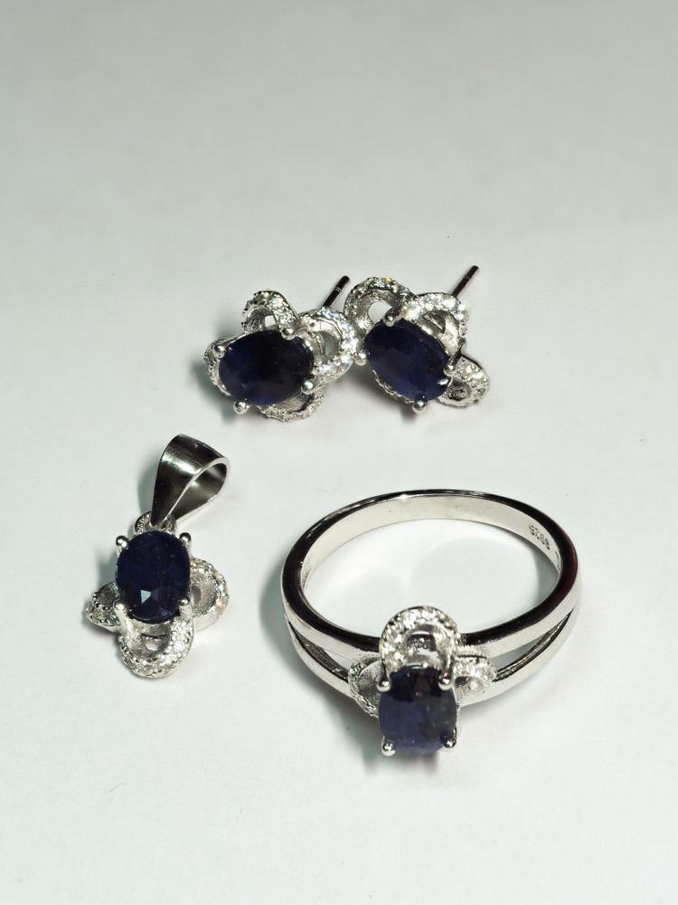 35 - JM37 - STERLING SILVER SAPPHIRE & CZ RING (SIZE 7), EARRING, & PENDANT SET. JEWELRY