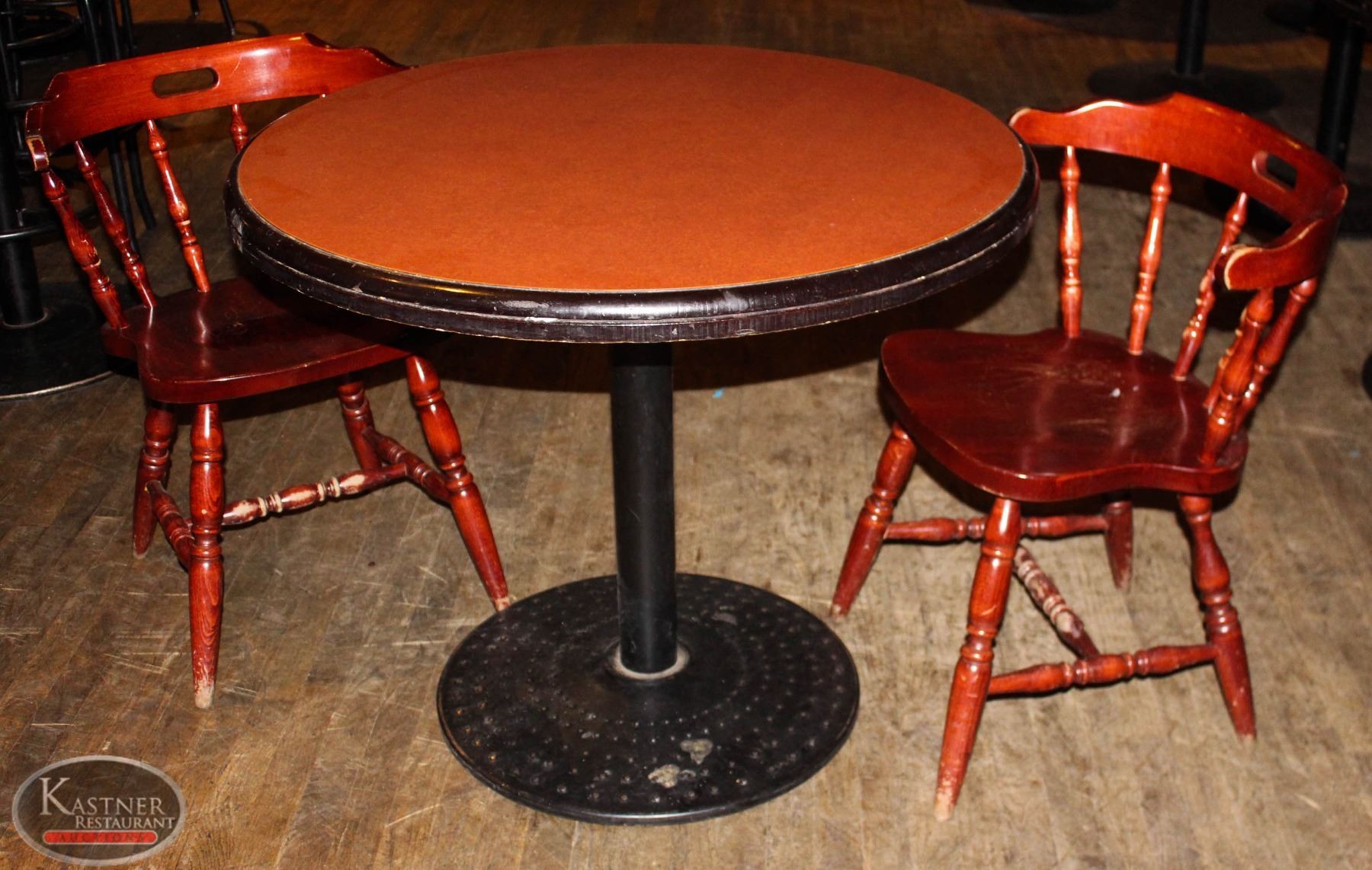 36  ROUND WOOD TABLE WITH 2 WOOD CHAIRS