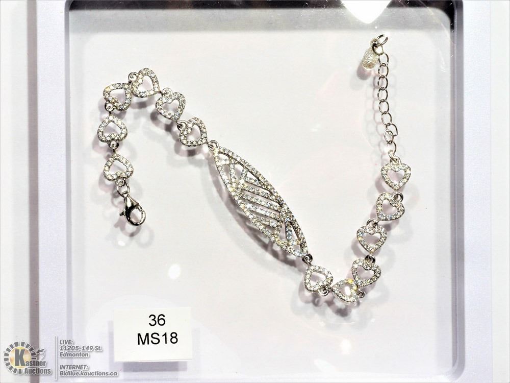 MS18 - 36- STERLING SILVER CUBIC ZIRCONIA BRACELET. JEWELRY