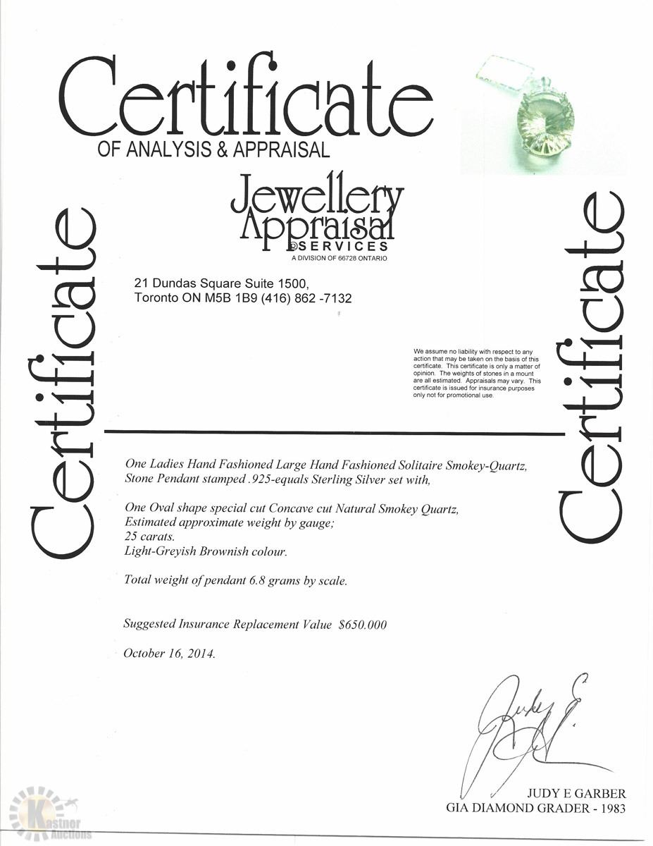 W/ COA - SUGGESTED REPLACEMENT VALUE $650.00