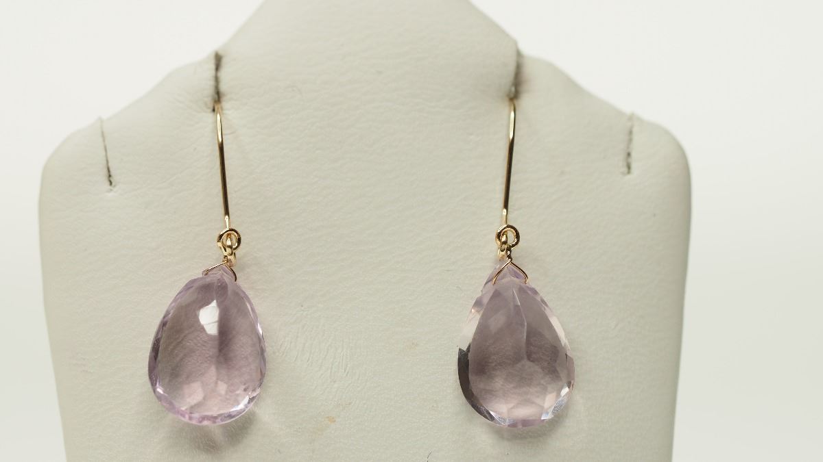 14K YELLOW GOLD AMETHYST(7.0CT) TEAR DROP EARRINGS
