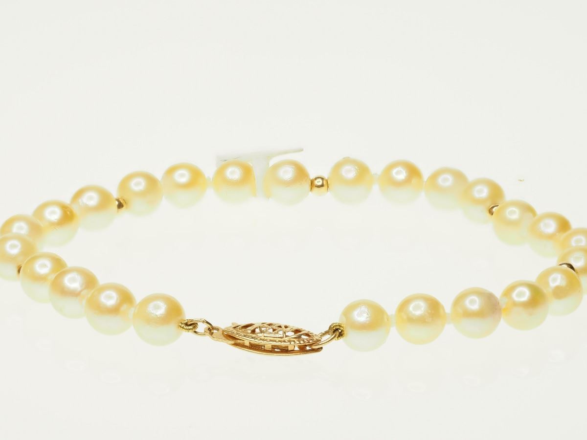 14K YELLOW GOLD FRESHWATER PEARL BRACELET. W/ COA- SUGGESTED REPLACEMENT VALUE $1,212.00