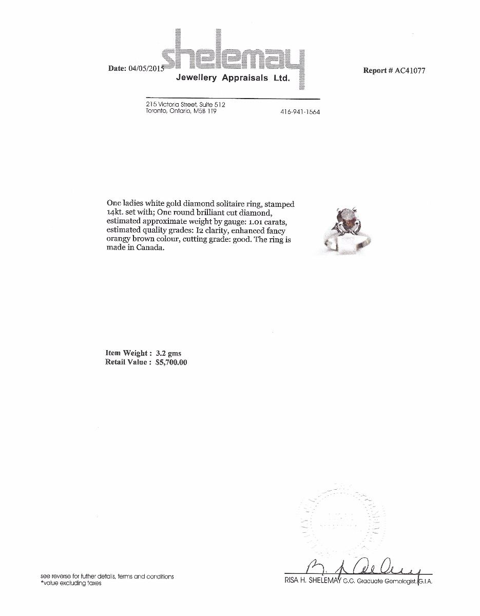 RING - COMES WITH COA SUGGESTED REPLACEMENT VALUE $5700
