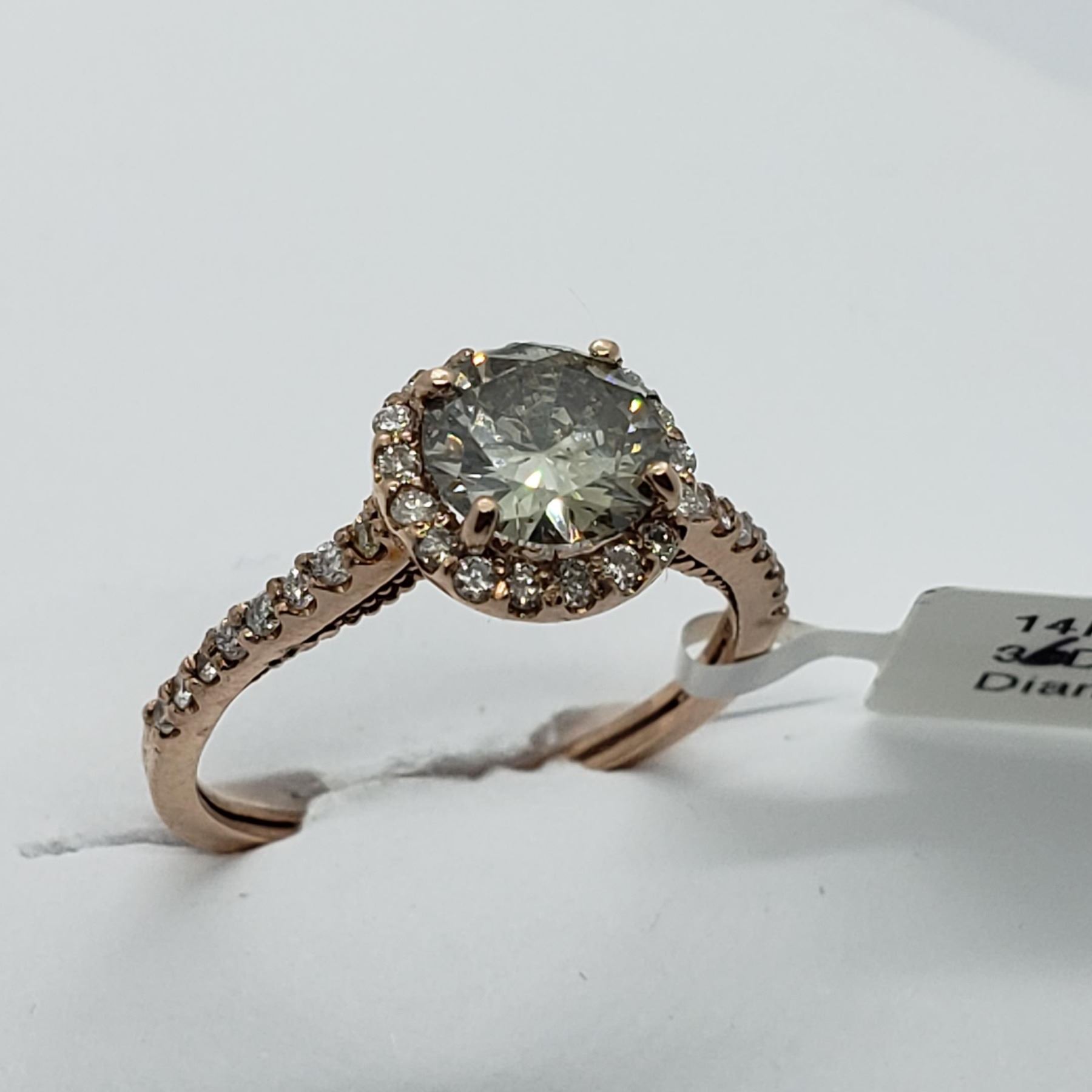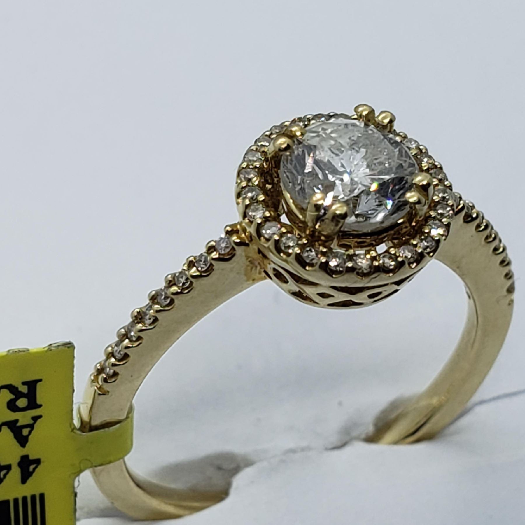 SIZE 6.75, ONE ROUND BRILLIANT CUT DIAMOND (MEASURING 5.53-5.54 X 3.90MM, CLARITY GRADE I-2 [LASER CLARITY ENHANCED], COLOR GRADE G, WEIGHING 0.83 CARATS), 41 ROUND BRILLIANT CUT DIAMONDS (MEASURING 0.80-0.90MM, CLARITY GRADE SI-2 TO I-1, COLOR GRADE G-H, WEIGHING 0.13 CARATS). TOTAL DIAMOND WEIGHT IS 0.96 CARATS. COMES WITH CERTIFICATE OF APPRAISAL FROM LOCAL APPRAISER. SUGGESTED INSURANCE COVERAGE $3,000.00. JEWELLERY