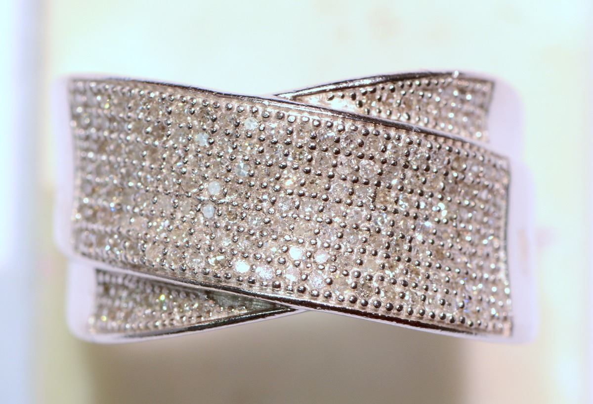 #37-STERLING SILVER DIAMOND (0.65CT) RING (5.71G)