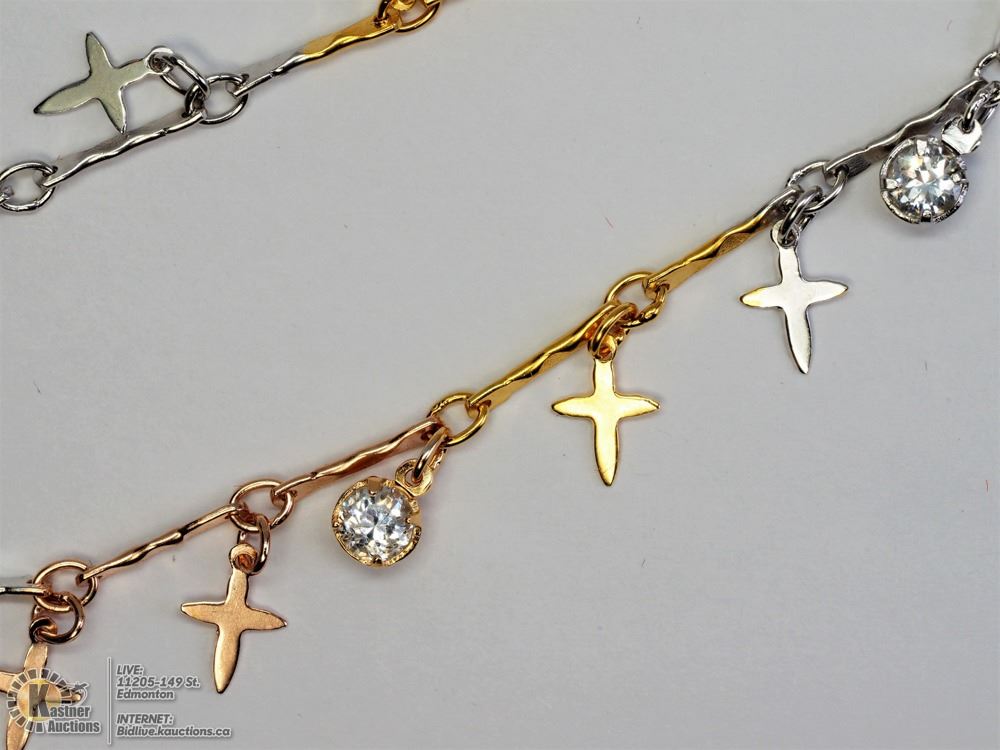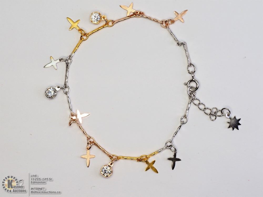 37 - MS3- STERLING SILVER TRI COLOUR CUBIC ZIRCONIA BRACELET. JEWELRY