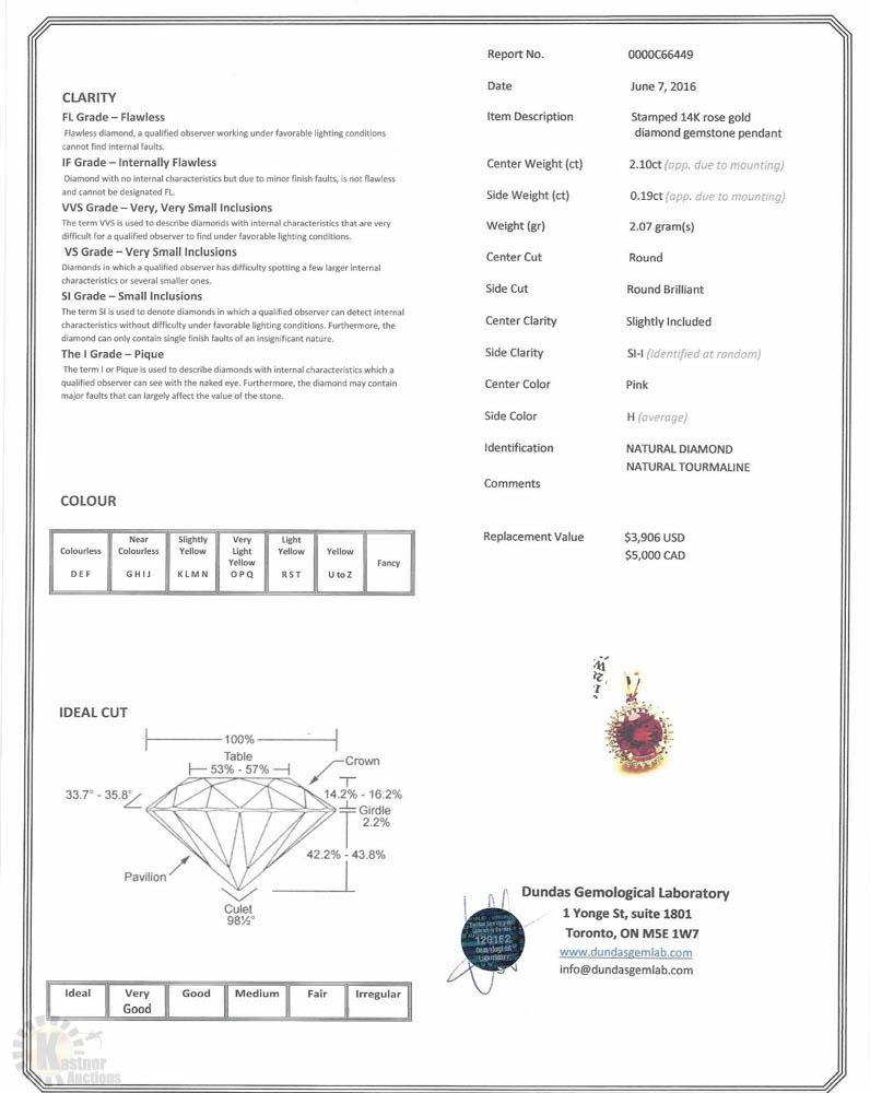 DIAMOND(0.19CT) PENDANT W/ COA - SUGGESTED REPLACEMENT VALUE $5,000.00