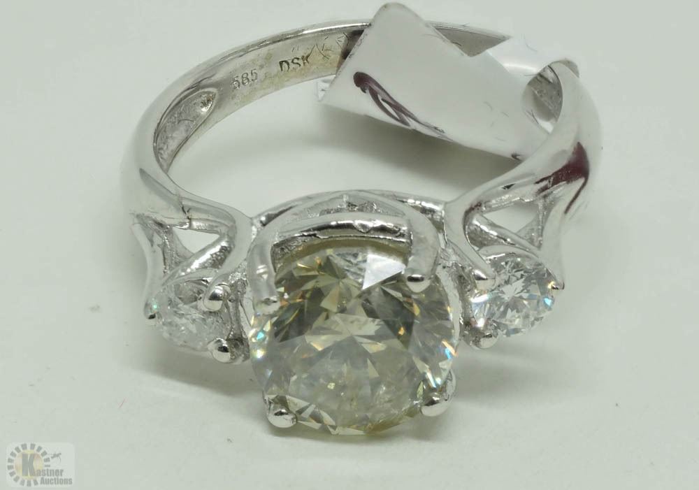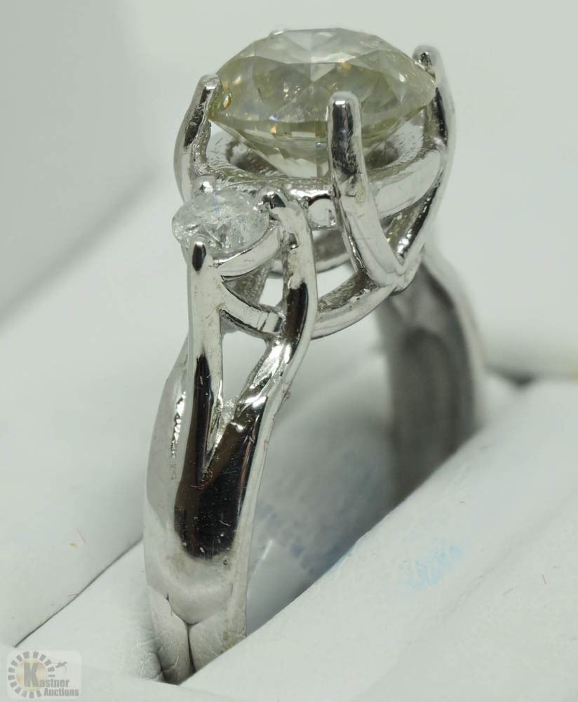 14KT WHITE GOLD BROWNISH YELLOW DIAMOND (2.70CT) AND WHITE DIAMOND (0.28CT) RING W/ COA - SIZE 6 - SUGGESTED REPLACEMENT VALUE $45,243.00