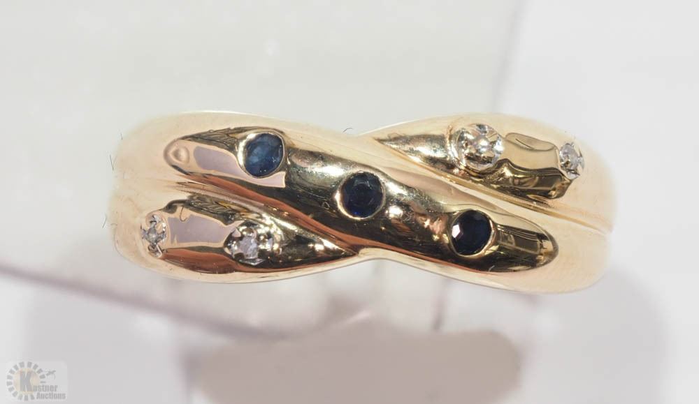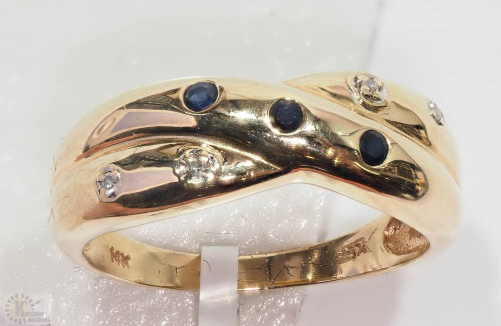 14KT YELLOW GOLD BLUE SAPPHIRE(0.10CT) & DIAMOND RING SIZE: 7.75 W/ COA - SUGGESTED REPLACEMENT VALUE $2,150.00