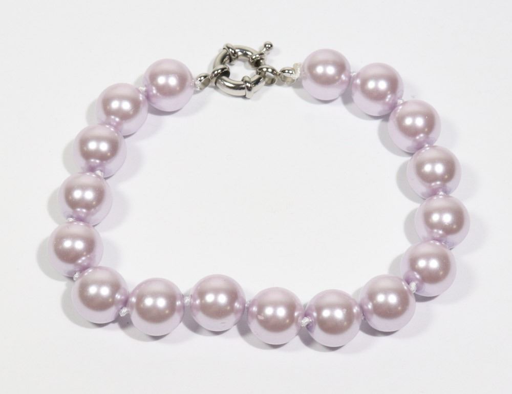 #38-LIGHT PURPLE SEA SHELL PEARL BRACELET 10mm/7.5