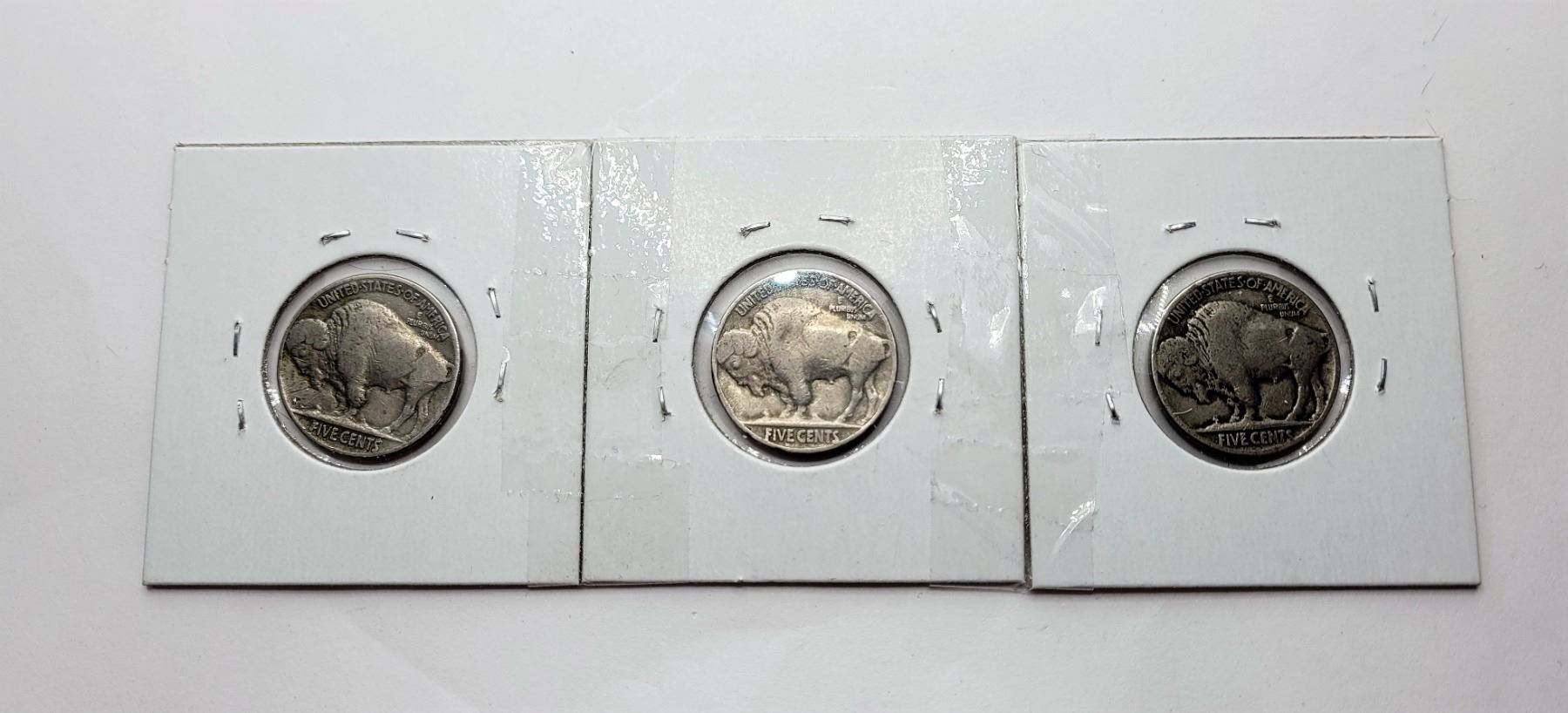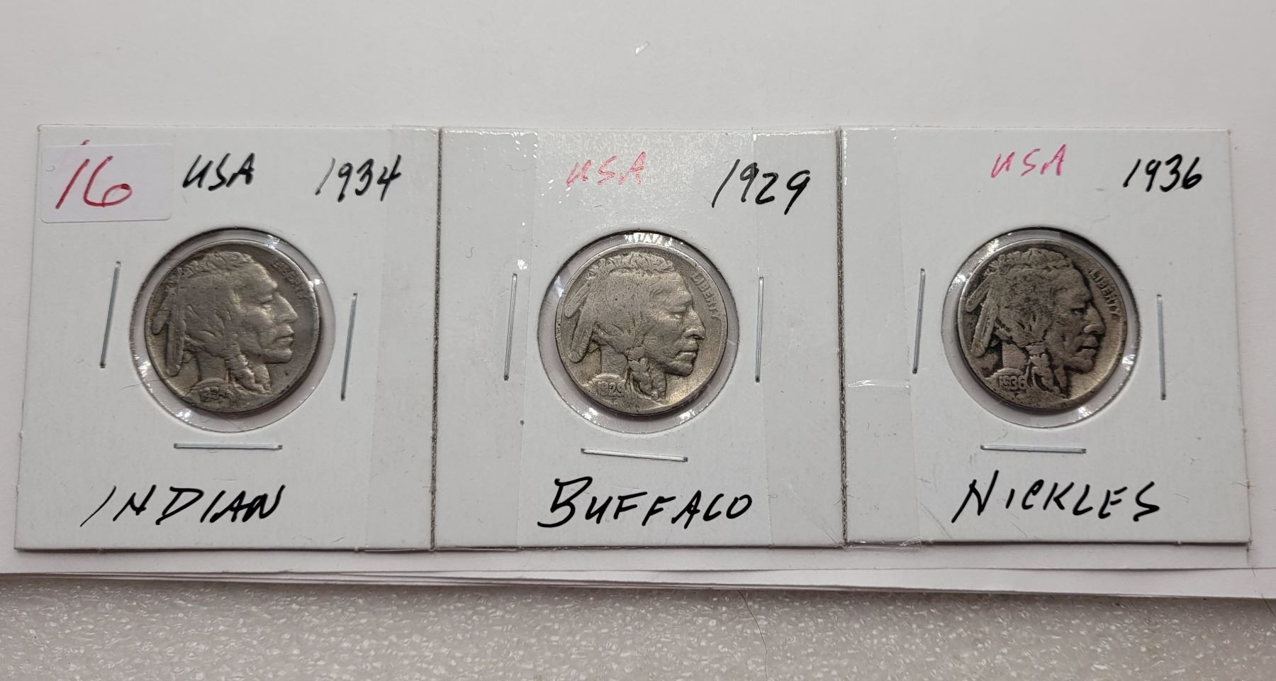 38) LOT OF 3 INDIAN HEAD US 5 CENT COINS, 1929,