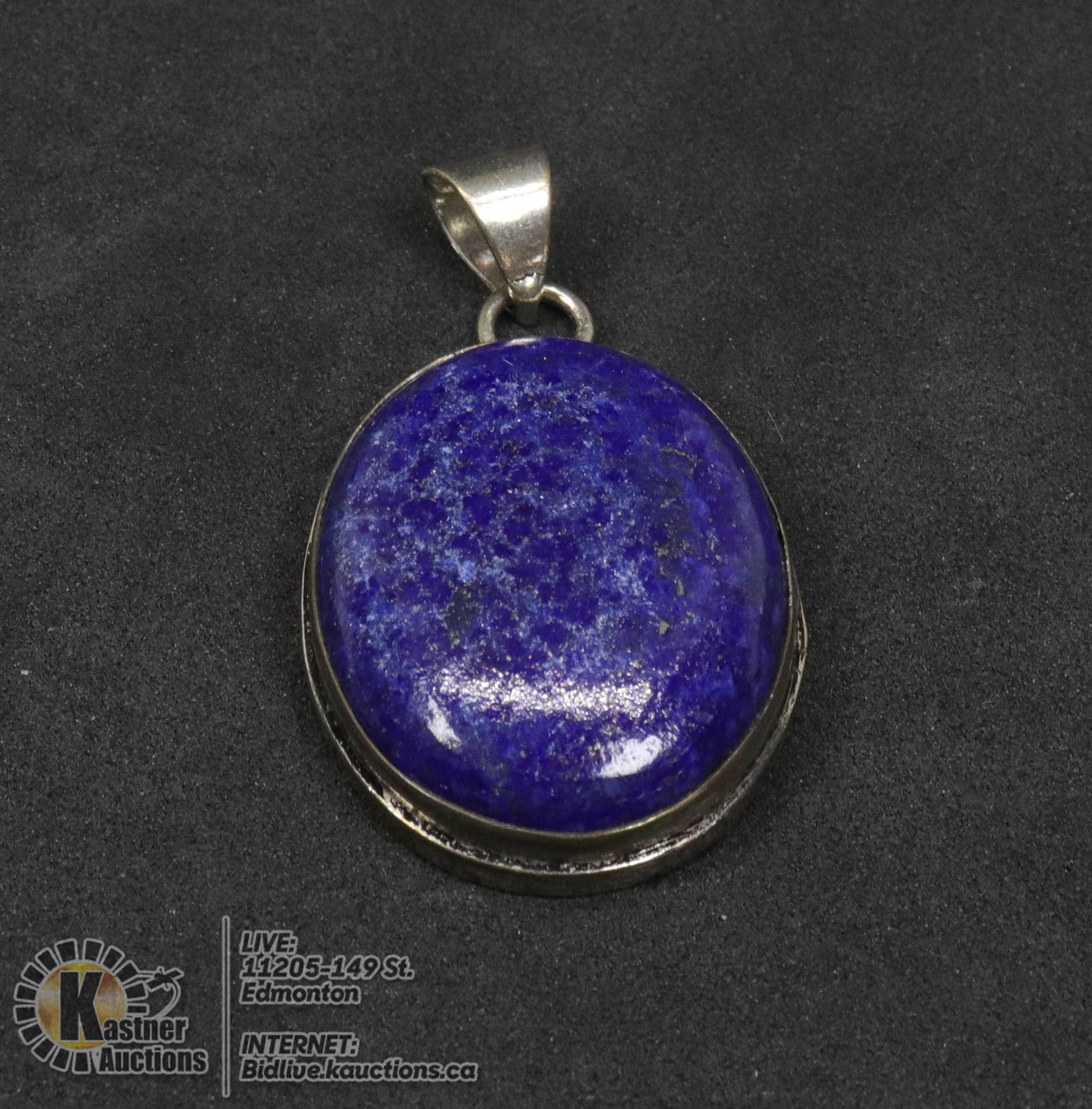 #38-NATURAL LAPIZ PENDANT JEWELRY/ SILVER PLATED/ HEALING MINERAL