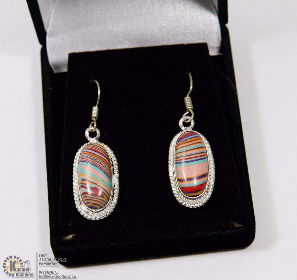 #38-RAINBOW CALSILICA GEMSTONE EARRINGS