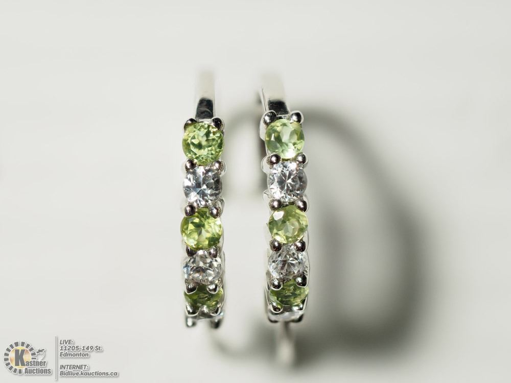 38-JP64 - STERLING SILVER GENUINE NATURAL PERIDOT EARRINGS. JEWELRY.
