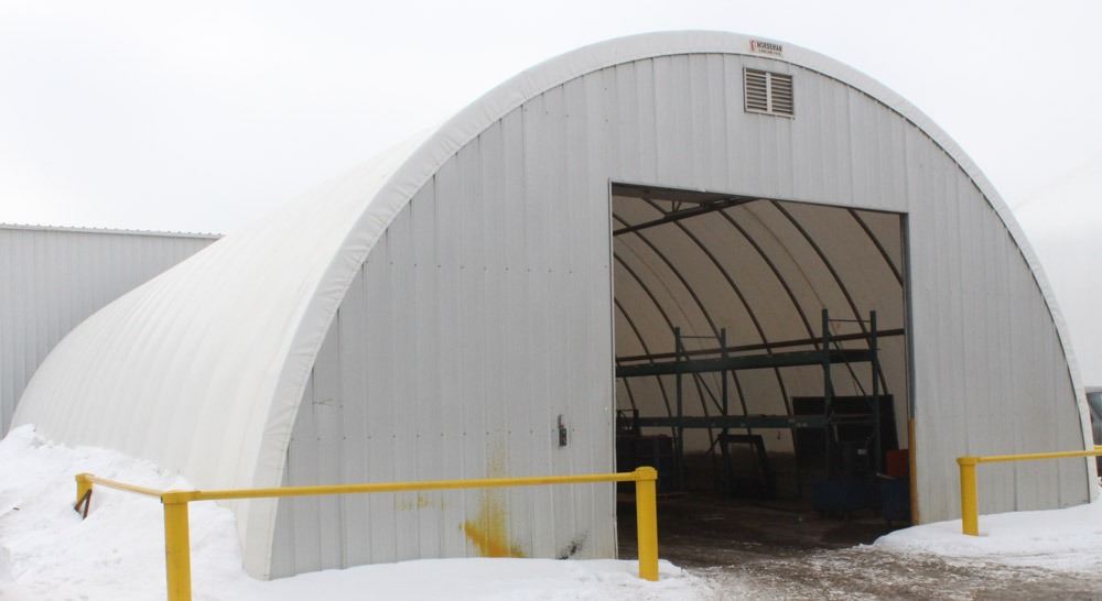 OVERHEAD DOOR AND LIGHTS, CANVAS COVERED WITH SHEET METAL WALLS ON BOTH ENDS **BUYER IS RESPONSIBLE FOR DISMANTLE AND REMOVAL OF QUONSET** **** THIS LOT CAN BE PICKED UP AT MCCOY GLOBAL,ADDRESS IS 14755 121A AVE, EDMONTON. ****