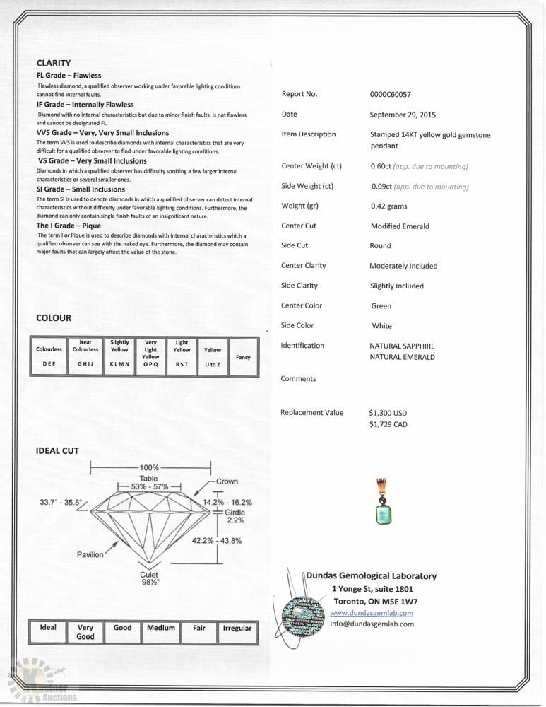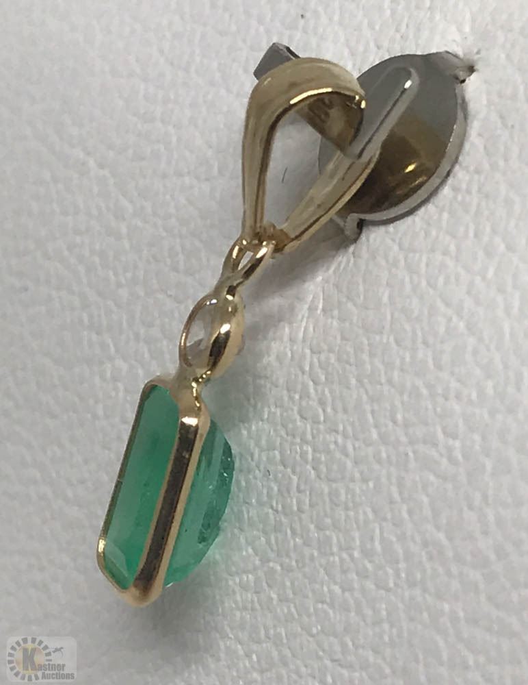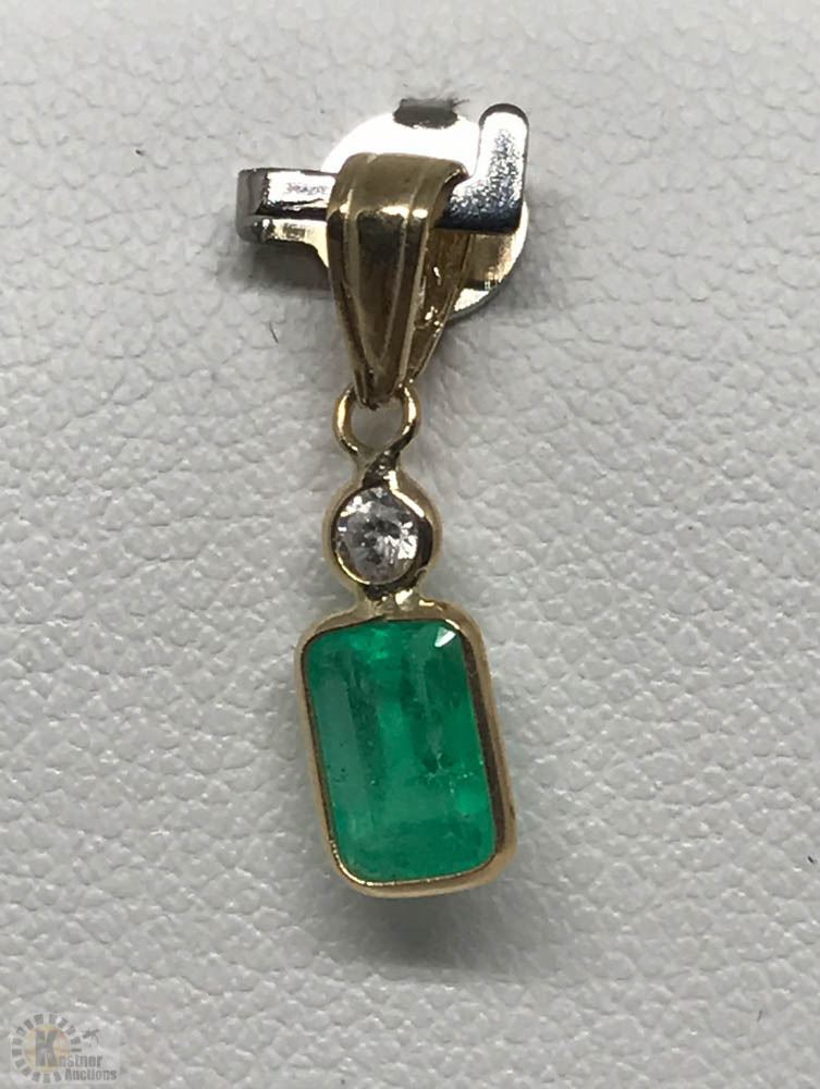 14K YELLOW GOLD EMERALD(0.60CT) & WHITE SAPPHIRE(0.09CT) PENDANT. W/ COA - SUGGESTED REPLACEMENT VALUE $1,729.00