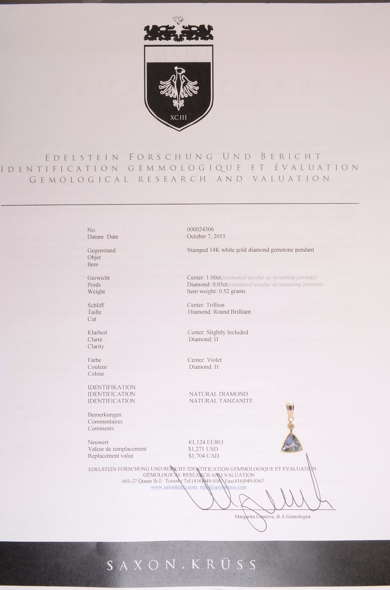 14K WHITE GOLD TANZANITE AND DIAMOND PENDANT SUGGESTED REPLACEMENT VALUE $1,704.00