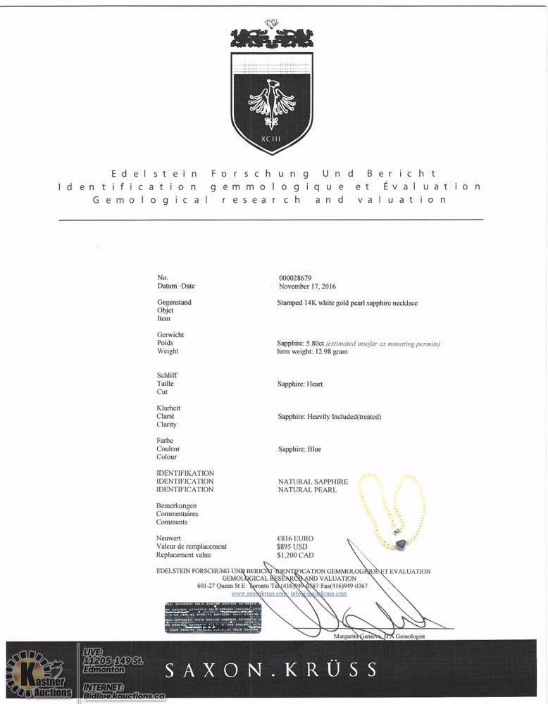(39 - MM6) FRESHWATER PEARL HEART SHAPED NECKLACE WITH COA -SUGGESTED REPLACEMENT VALUE $1,200.00