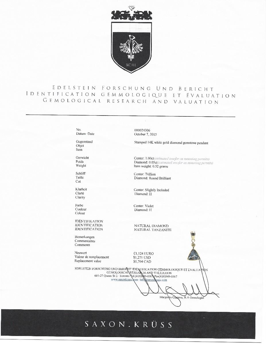 DIAMOND PENDANT. W/COA -SUGGESTED REPLACEMENT VALUE $1,704.00