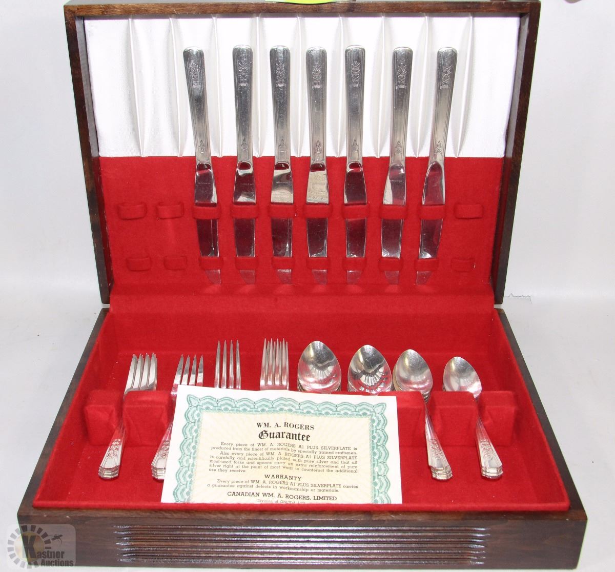 MISSING 1BUTTER KNIFE. WITH WOODEN BOX.