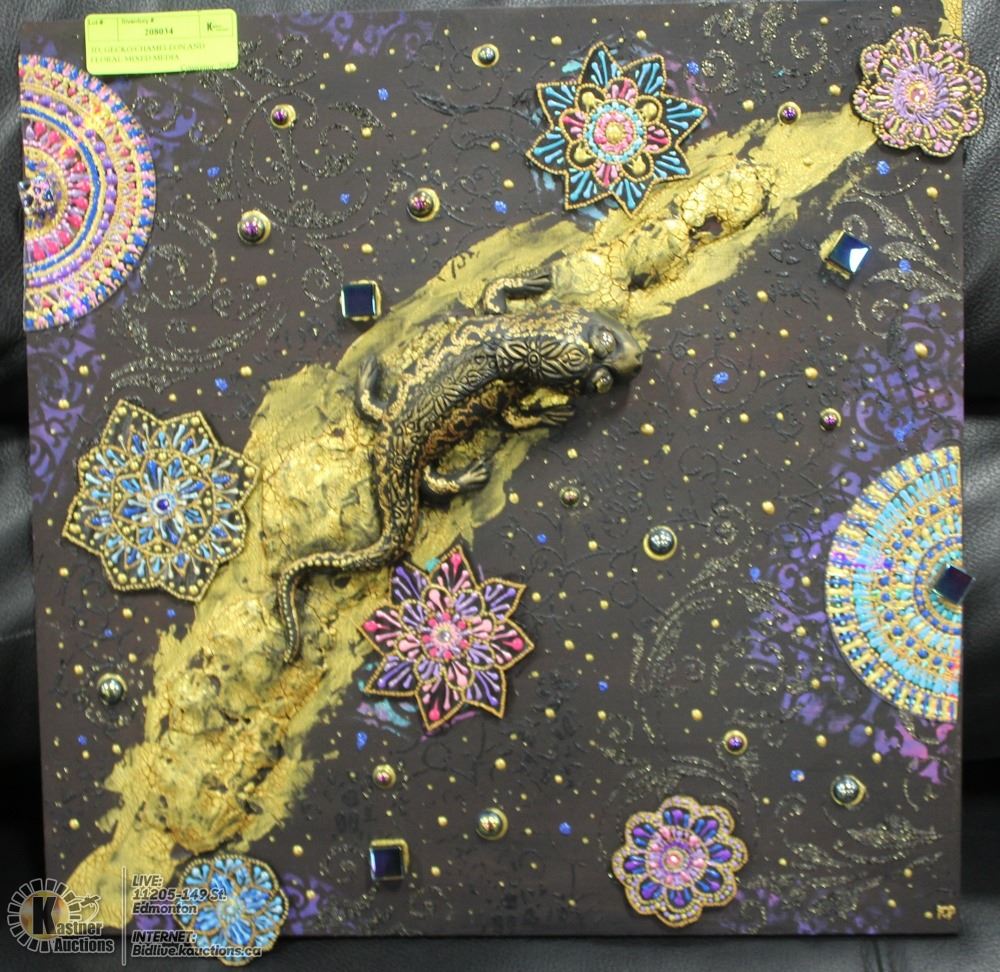 PAINTING ON BOARD, HAS WALL HANGER IN BACK 16”X16” BY LOCAL ARTIST. HOME