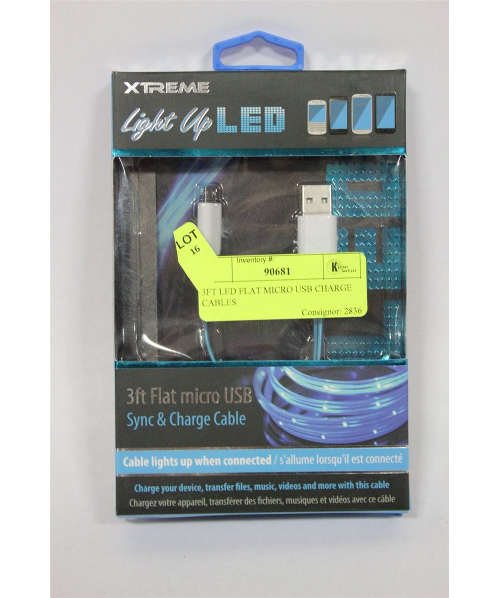 3FT LED FLAT MICRO USB CHARGE CABLES