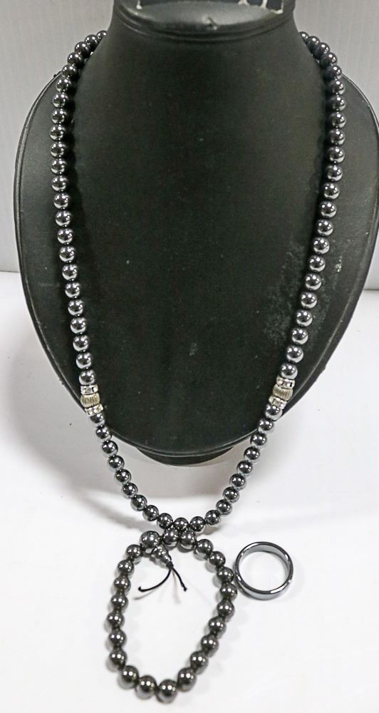 3PC HEMATITE SET INCLUDES RING NECKLACE & BRACELET