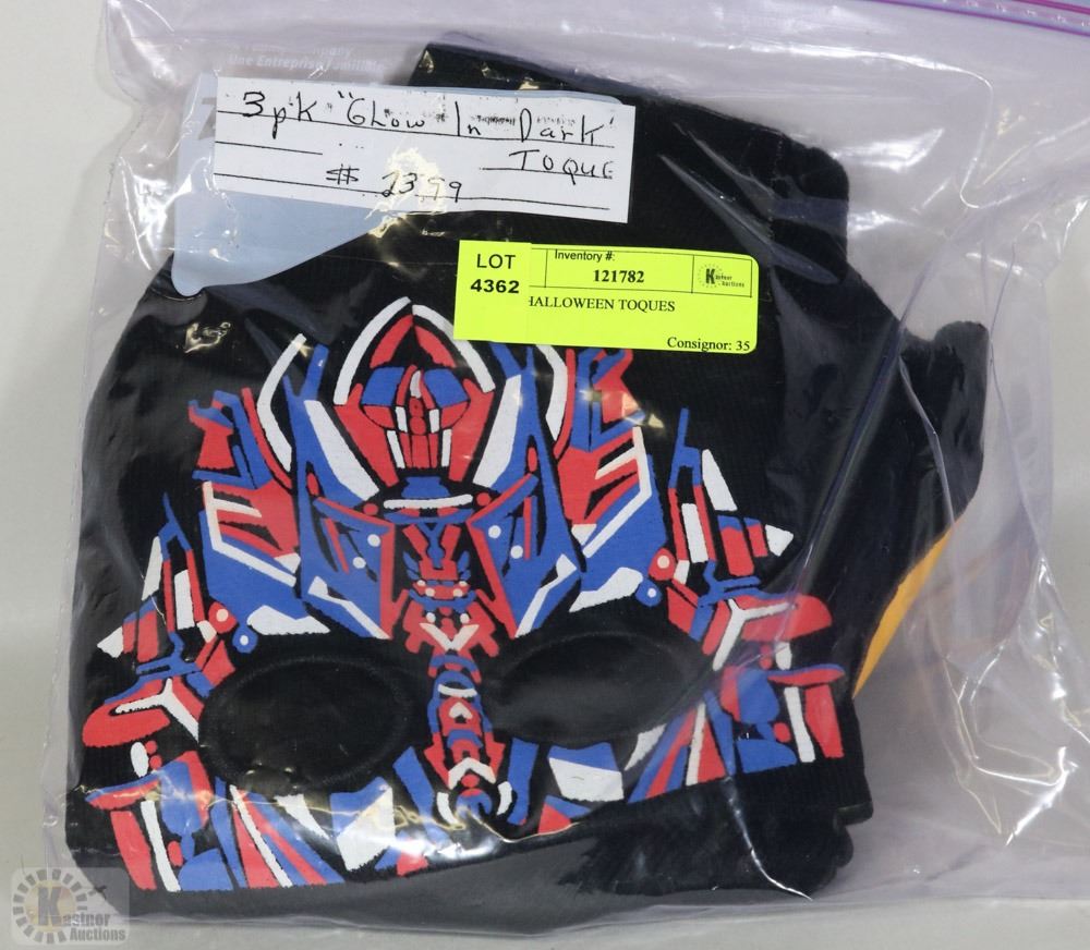 3PK GLOW IN THE DARK HALLOWEEN TOQUES