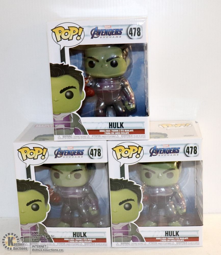 3PK OF AVENGERS ENDGAME FUNKO POPS; HULK
