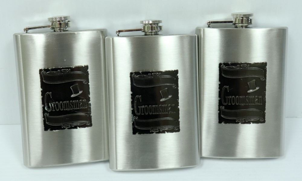 3PK ST. STEEL "GROOMSMAN" 8 OZ FLASKS
