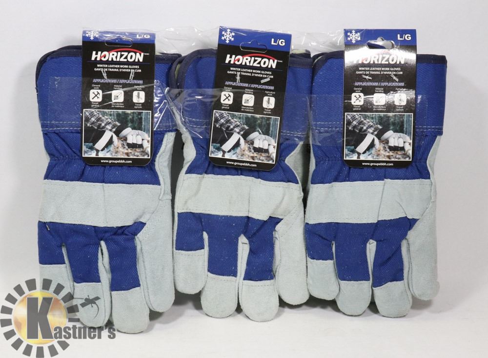 3X PAIR OF WINTER LEATHER WORK GLOVES