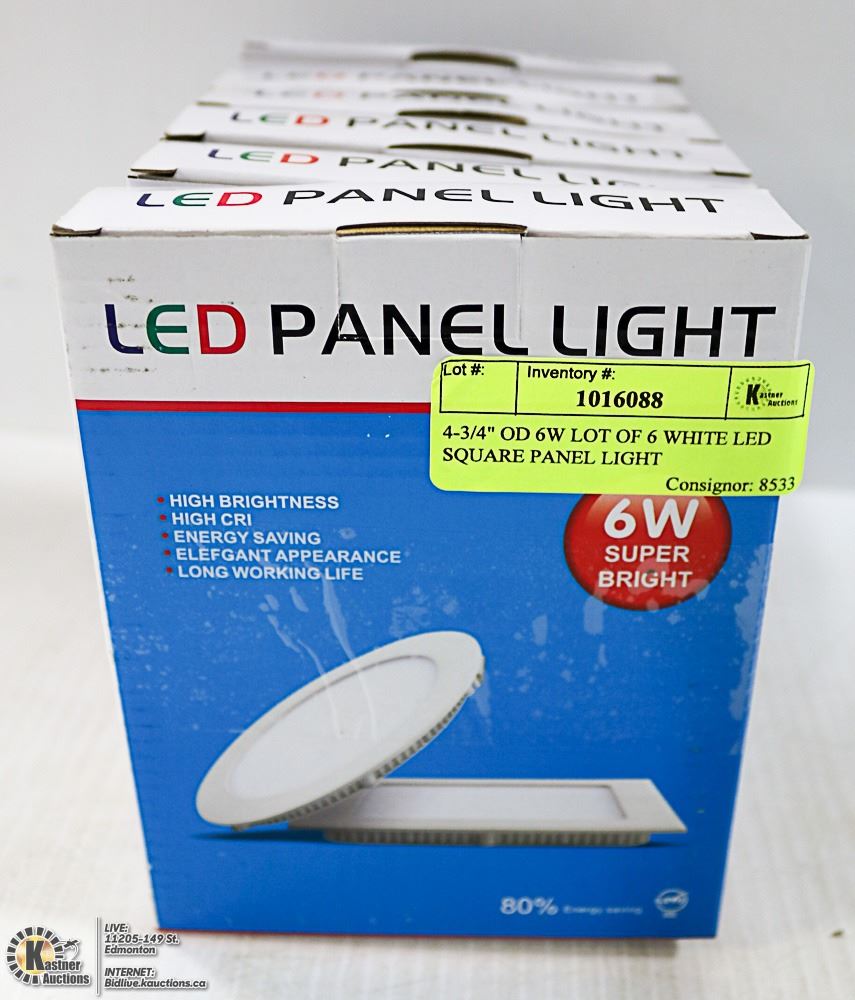 4-3/4" OD 6W LOT OF 6 WHITE LED SQUARE PANEL LIGHT