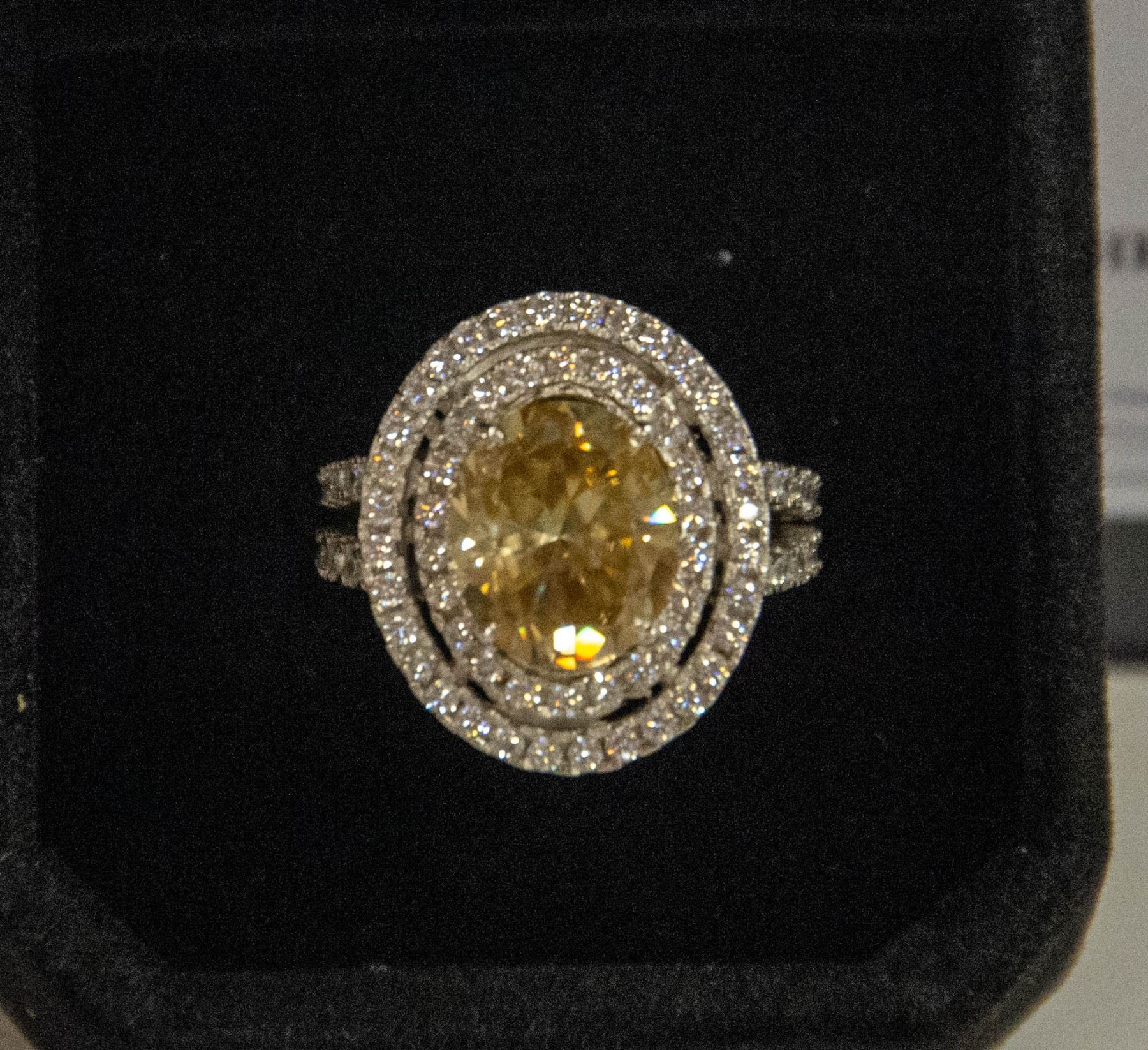 WITH 2 LEVELS OF HALO STONES WITH SPLIT SHANK. SIZE 7.5 APPRAISED VALUE $2440.00 **ALL ITEMS MUST BE REMOVED BY 5PM SATURDAY, JULY 29TH 2023. ALL REMAINING ITEMS WILL BE SUBJECT TO A $6.00 PER DAY STORAGE CHARGE. ANY ITEMS REMAINING AFTER MONDAY, AUGUST 14TH, 2023 WILL BE CONSIDERED FORFEITED. NO REFUNDS WILL BE ISSUED FOR FORFEITED ITEMS. TO SCHEDULE A PICK UP APPOINTMENT CLICK HERE