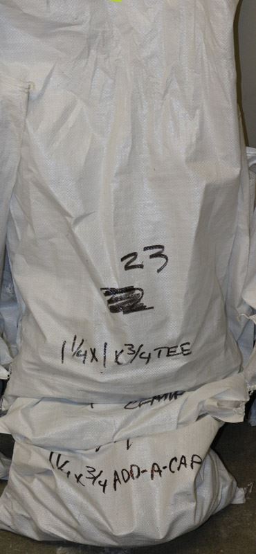 23- 1 1/4" X 1 X 3/4" CAST IRON TEE, 6- 1" RIGID PIPE CLAMP, 34- 1 1/4" X 3/4" ADD-A-CAP, 60- 1 1/4" CAST IRON COUPLING