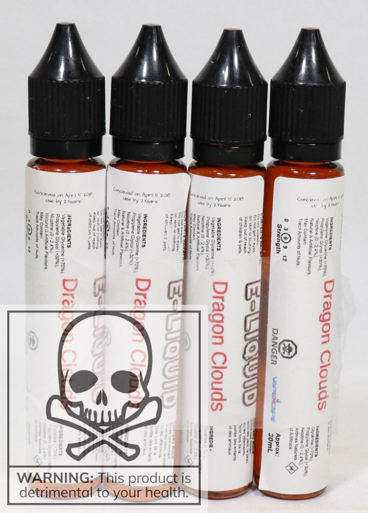 X 30ML PER BOTTLE OF VAPE JUICE. ADULT ONLY. / CAN NOT BE SHIPPED / CURBSIDE PICKUP ONLY / MUST BE 18 OR OLDER TO BID AT KASTNER AUCTIONS.