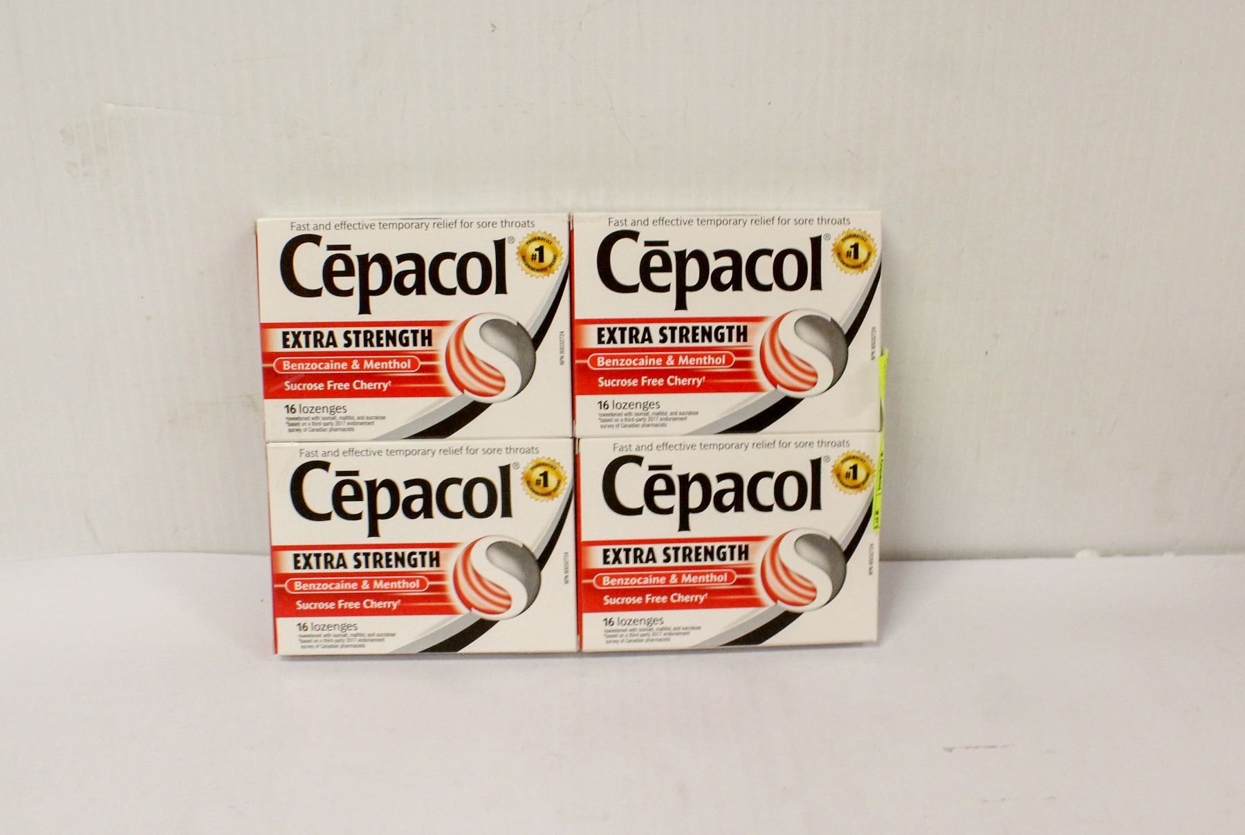 4 BOXES OF CEPACOL EXTRA STRENGTH FAST & EFFECTIVE RELIEF FOR SORE THROATS BENZOCAINE & MENTHOL. SUCROSE FREE CHERRY. 16 LOZENGES PER PACK X 4. EXP 04/2022