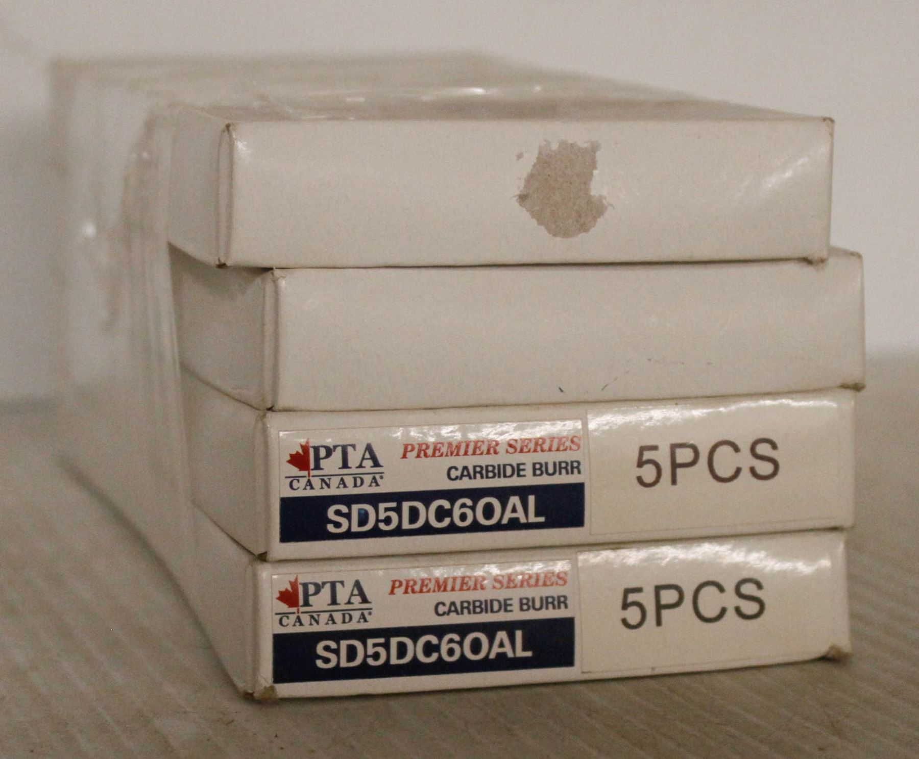 4 BOXES OF PTA CARBIDE BURRS, 5 PC PER BOX PART #SD5DC60AL