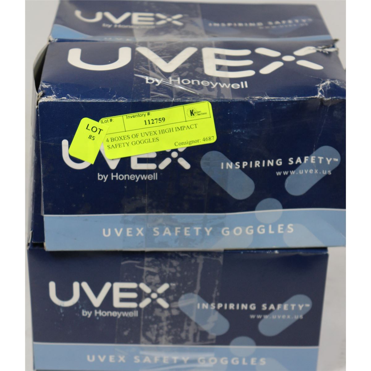 4 BOXES OF UVEX HIGH IMPACT SAFETY GOGGLES
