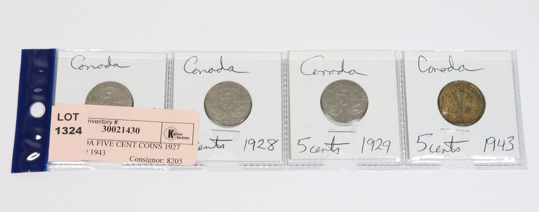 4 CANADA FIVE CENT COINS 1927 1928 1929 1943
