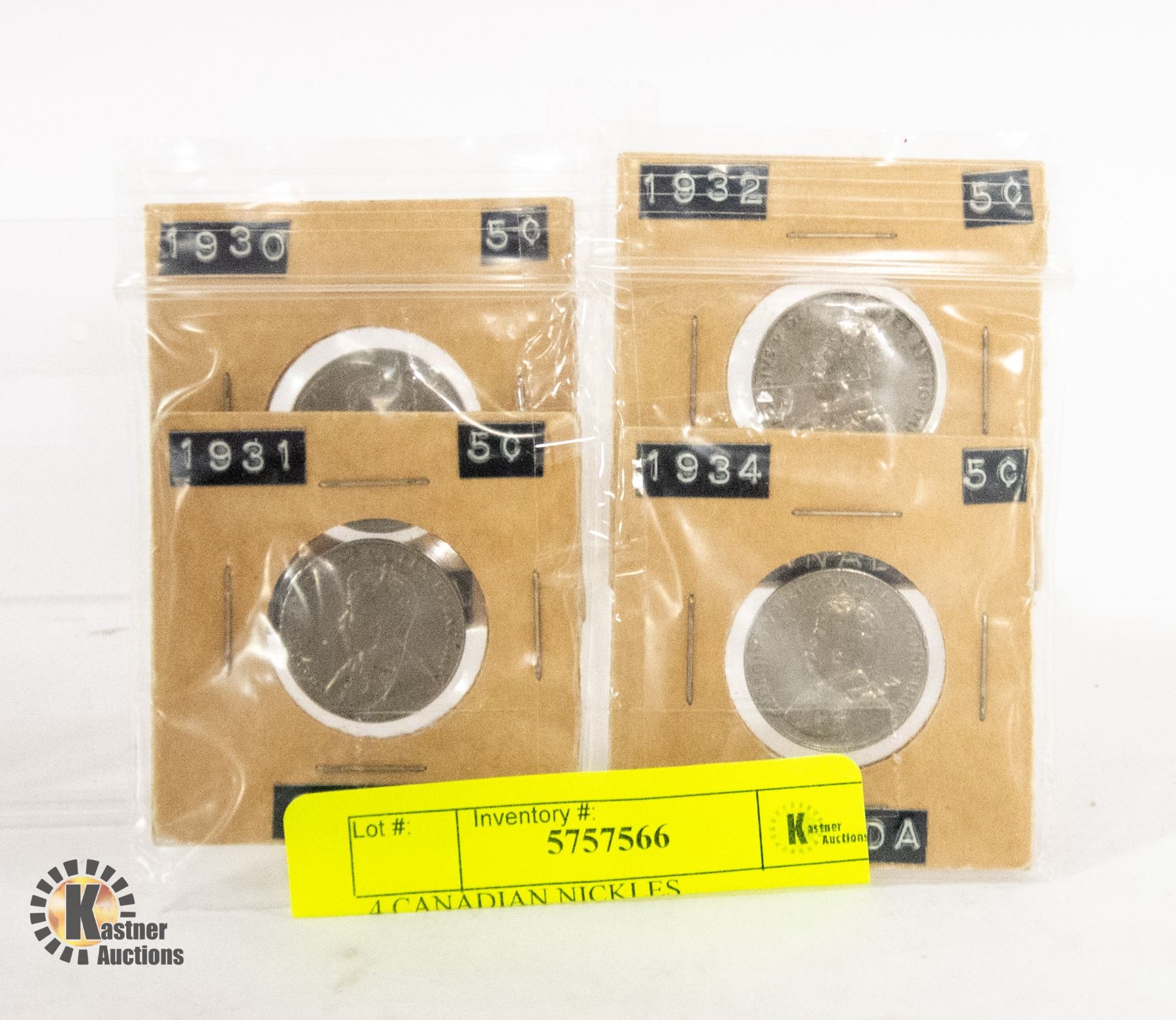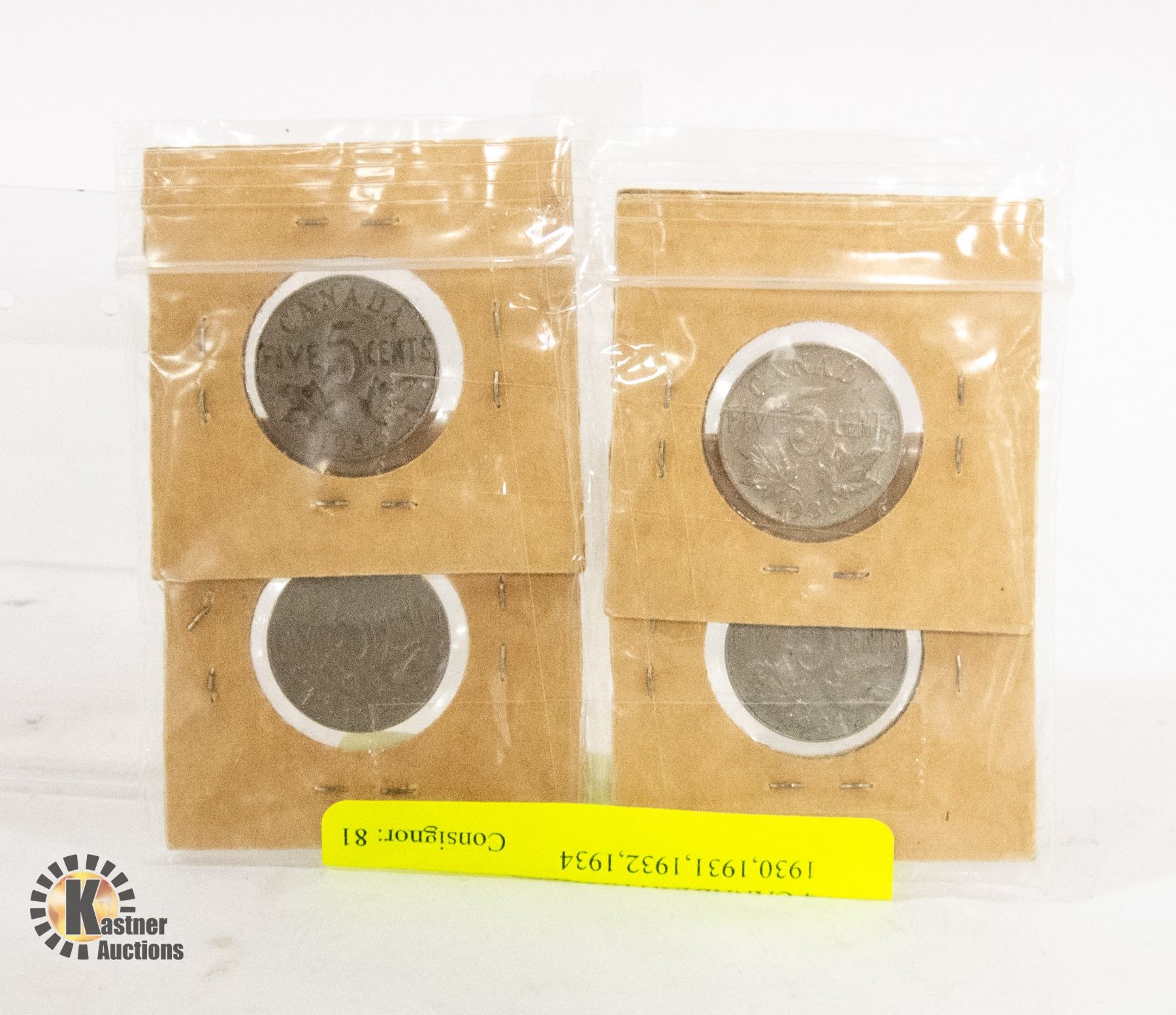 4 CANADIAN NICKLES 1930,1931,1932,1934