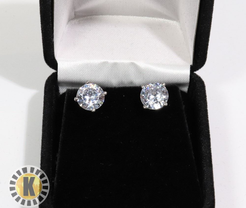 4 CT TOTAL WEIGHT CUBIC ZIRCONIA ROUND BRILLIANT DIAMOND STERLING SILVER EARRINGS, NEW***ITEM IS LOCATED IN LETHBRIDGE ALBERTA, PICKUP IS AT OUR LETHBRIDGE LOCATION ONLY, WORLDWIDE SHIPPING IS AVAILABLE***