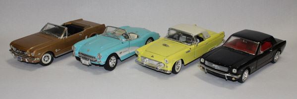69 MUSTANG CONVERTIBLE, 57 CORVETTE, 55 T-BIRD & 65 MUSTANG COUPE