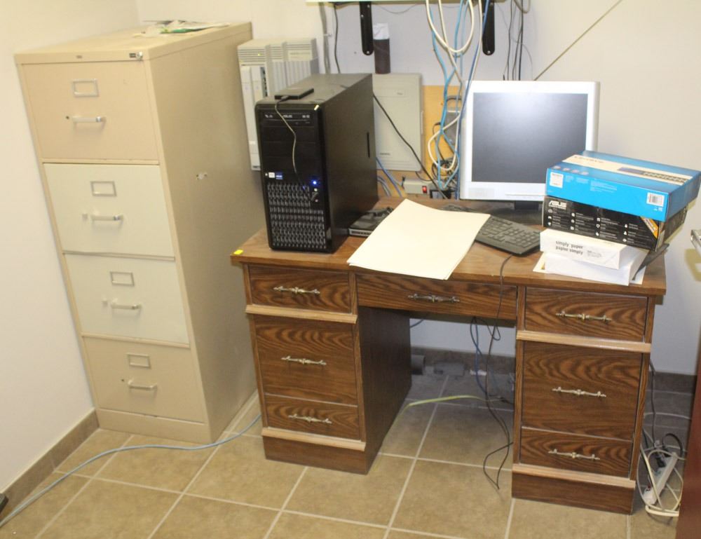 4 DRAWER FILING CABINET AND WOOD OFFICE DESK